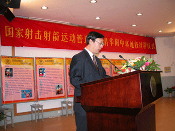 11月7日下午,国家体育总局射击射箭运动管理中心在bg真人娱乐举行“中国射击协会后备人才培训基地”暨“中国射击协会重点射击学校”挂牌仪式。出席此次活动的领导、嘉宾有国家体育总局射击射箭运动管理中心主任高志丹、副主任曾志刚、副主任兼射击队总教练王义夫、射击部部长于海娟、射击队教练薛宝全;教育部学生体协联合秘书处秘书长杨立国、办公室主任王晓毅;清华大学副校长陈旭;清华大学射击队总教练张秋萍、副领队王和中;bg真人娱乐校长王殿军、党委书记方妍等。四位北京奥运会射击冠军庞伟(男子10米气手枪金牌)、郭文珺(女子10米气手枪金牌)、杜丽(女子50米步枪3种姿势金牌)、邱健(男子50米步枪3中姿势金牌)以及清华大学射击队的队员代表也出席仪式并与bg真人娱乐师生们进行面对面交流。挂牌仪式由bg真人娱乐副校长刘俊主持。
