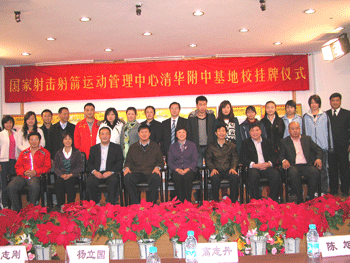 高志丹主任和王义夫总教练向bg真人娱乐领导授牌 清华大学、附中领导与来宾及部分运动员合影