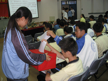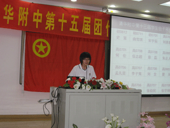 大会在庄严的国歌中开始。校领导为高三和初三年级的团委学生会成员颁发了证书及纪念品,高0608班符晓同学作为学生会干部代表发表了感言。36位通过初选选拔出的候选人依次按学生会、团委的顺序发表了简短而激昂的竞选演说,介绍了自己的基本情况、特长和工作经验,表达了为同学服务的意愿,精彩的发言得到了与会代表的强烈共鸣。演讲结束后,代表们分别对团委和学生会的竞选者进行了公正的投票。之后,上一届团委学生副书记刘梦莹同学和学生会主席郭一然同学分别针对一年来团委、学生会的工作做了具体而详细的报告。党委副书记周兆玉在会上讲话,向新当选的干部表示祝贺,同时也提出了要求和殷切希望,为新一届团委和学生会的工作指明了方向。最后,大会在激昂的团歌中结束。