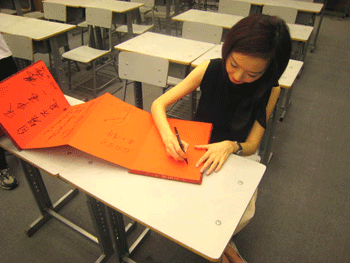 采访结束后,鲁豫给校电视台同学们赠言:“很羡慕你们,希望有一天我们成为同行。”并在校友录上留言:“好好珍惜在附中的每一天”。