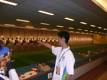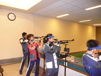 郭旭凯同学在男子气手枪比赛中 女子气步枪比赛(左2张丹枫,左3王威旸)