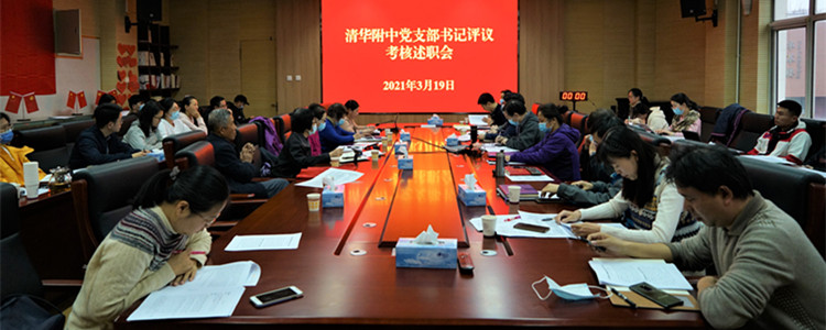 为顺利做好现场评议,各党支部结合附中实际,突出重点,集中学习,准确把握党中央加强基层党组织和党员队伍建设有关要求,为开好组织生活会和开展民主评议党员打牢思想基础,并积极开展谈心谈话,广泛征求意见,联系实际查摆问题。附中党委根据《清华大学党支部工作评价指标体系(试行)》,分别组织了群众以及各职能部门评议党支部工作。各党支部所辐射的群众代表以及各职能部门代表分别从服务引领党员群众、服务中心工作、师德师风建设、党员工作态度以及成绩等方面对各在职党支部进行评议。