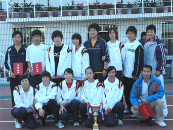5月10日,由北京市教委、北京市体育局主办,大兴区教委、大兴区体育局协办的“北京2008奥林匹克教育学校体育后备人才培养基地”田径运动会在北京市大兴区第一中学举行,bg真人试玩的36名同学在马约翰体育特长班办公室主任罗健、体育教师王俊林、李金平、李光明的带领下参加了此次比赛。经过奋力拼搏,以24金的成绩勇夺团体第一名;其中高0509班卜苑、高0609班王邵鹏、高0709班王宇分别打破了甲组女子100米栏、乙组男子5000米、乙组男子跳高赛会纪录。学生王康、王宇被评为2008年“北京2008奥林匹克教育学校体育后备人才培养基地”田径运动会优秀运动员;李光明老师被评为2008年“北京2008奥林匹克教育学校体育后备人才培养基地”田径运动会优秀教练员。bg真人试玩党委书记方妍在比赛期间亲临赛场给学生加油助威。