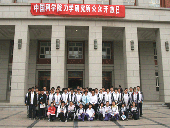 同学们参观流体力学实验室 同学们在力学所大楼前合影