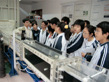 在力学所同学们参观了流体力学实验室、固体力学实验、应用流体力学实验室。并聆听了北京大学武际可教授做《奥运的科技之光》、《拉家常,说力学》、《诗情画意谈力学》的讲座,并就同学们感兴趣的话题进行了互动交流。