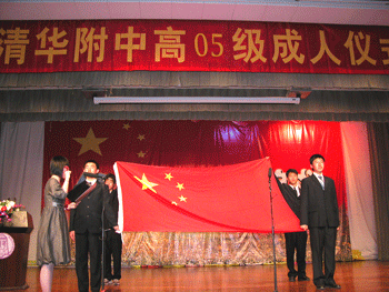 18岁,是人生的重要时刻,尤其对于即将面临高考的高三年级同学们更是意义非凡。此次成人仪式旨在使高05级同学18岁成人之际,回顾成长的历程、明确肩负的责任、感悟追求的真谛。首先进行的是“迈入成人门”仪式,在成人门前高三各班班主任为学生们颁发成人纪念册和家长信,并一一合影留念,学生们带着老师和家长的祝福迈入成人门。在“成长的历程”的短片中,18岁成人典礼拉开了序幕。全体起立高唱国歌后,党委书记方妍代表学校向全体学生致辞。高0508班毛雅璐同学的父亲毛教授也代表全体家长对高三学生给予殷勤希望。此次成人仪式采用教师为班级致贺辞的形式,使全体高三任课教师走上舞台,向学生们表达真挚的祝福,台下的学生们则高声呼喊着老师们的名字,全场都异常激动。高三各班用精心制作的短片回顾了高中三年的时光,也对未来给予了期望。期间穿插的精彩的节目更是让整个典礼高潮迭起——各班学生代表的诗朗诵《感谢》道出了对十八年来父母的养育之恩和老师的培育之情的真挚谢意;王殿军校长演唱的歌曲《儿行千里》更是感人至深,博得了全体师生和家长们的热烈掌声,成为整场活动的经典。之后,全体高三学生面对国旗宣读《成人誓词》。成人典礼在全体高唱《阳光总在风雨后》的歌声中结束。