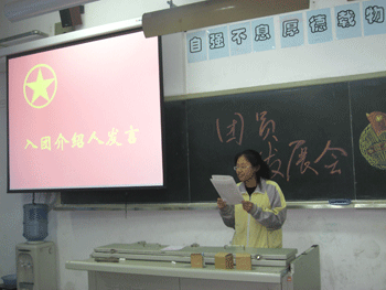 12月20日下午,bg真人试玩团委组织各团支部举行了新团员发展会。发展会在庄严的团歌中开始,新团员们首先宣读了入团志愿书,接着介绍人及其他团员对新团员在思想、学习和生活中的表现发表了意见。然后,新团员接受了入团答辩,支部团员集体讨论并对申请入团的同学举手表决,最后新团员代表、入团积极分子代表和班主任老师都做了发言。随着国际歌激昂的旋律,团员发展会结束了。