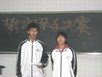 本次比赛的评委是鞠红老师、王加宁老师和来自101中学的两名首席钢琴手。决赛中,教室里座无虚席。选手们一一上场演出精彩节目,同时,关于他们学琴的经历,以及对参赛曲目的感悟也在各个选手演奏时在大屏幕展示出来。最后,101中学的两位同学以及一些选手为观众带来了即兴的表演,赢得了阵阵喝彩声。