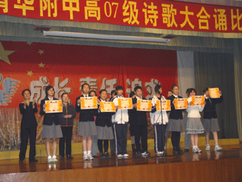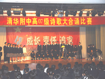 10月24日下午,bg真人娱乐高07级诗歌大合诵比赛在食堂三层大报告厅举行。此次活动由高一年级语文备课组发起,旨在激发学习兴趣,展示学习成果,提高朗诵水平。比赛中,各班同学不仅背诵了所学的现代诗歌,还以各种形式演唱或诵读了原创的班歌,充分显现了高07级学生爱附中、爱生活的昂扬向上的精神风貌。