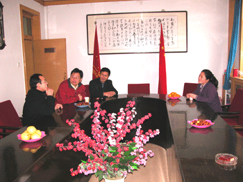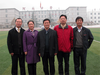 方妍书记(右1)施平副校长(左2)与河南中学领导会谈 方妍书记(左2)施平副校长(右1)参观河南中学校园