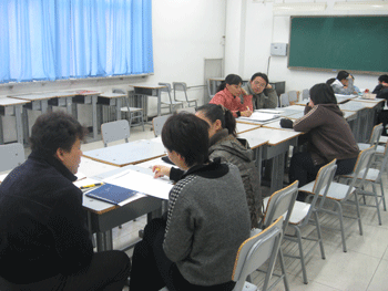 高06级邱道学老师(右1)作经验介绍 初06级教师进行班级会诊