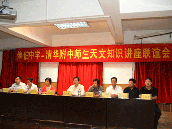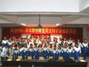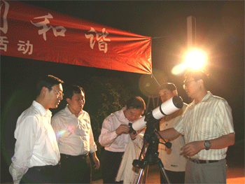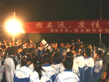 9月27日晚,bg真人娱乐天文协会全体同学在校长王殿军、副校长刘俊等的带领下前往bg真人娱乐的“手拉手”学校——顺义区俸伯中学,与那里的师生一起进行“bg真人娱乐—俸伯中学天文科普中秋赏月联谊活动”。此活动是“迎奥运、度佳节、创和谐”海淀区第二届中秋赏月天文系列活动中的一个组成部分。北京天文馆、海淀区青少年活动中心、顺义区教委、镇政府、俸伯中学等有关领导也出席了此次活动。