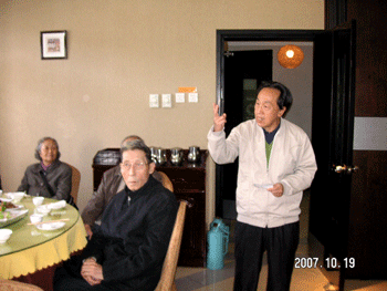 附中老教协副会长张亦鸣代表老教协致辞,并赋诗一首,表示在党的十七大召开之际,对一生从教、桃李满天下的老同志们表示节日的祝福:“老友相逢在重阳,欢声笑语喜满堂。举杯同庆十七大,永享和谐与安康。夕阳仍灿人生路,晚霞依晴寰宇天。岁岁重阳登高去,敢教日月写新篇。”