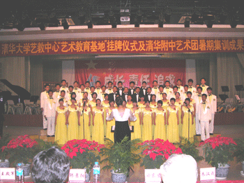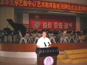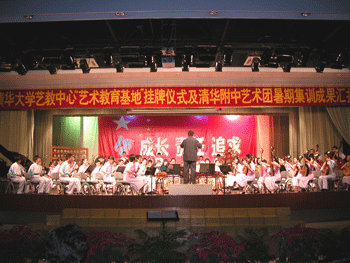 9月1日下午,清华大学艺术教育中心“艺术教育基地”挂牌仪式在bg真人试玩大报告厅隆重举行。清华大学党委副书记韩景阳、清华大学艺术教育中心主任朱汉成、书记寇可新、市教委体美处处长王军、海淀区教委校外教育办公室主任王宣德、中国民族管弦乐学会会长朴东生、副会长刘文金率民乐界十余位专家出席,bg真人试玩校领导王殿军、方妍、刘俊、施平、周兆玉及附中一千多名师生共同参加了挂牌仪式。副校长刘俊主持挂牌仪式。