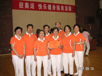 9月13日,在清华大学离退休处举办的“迎奥运 快乐健身操表演赛”中,由邢淑兰、贾玉琛、王铭、杨宝珊、钱露蔓、耿舒青、姚文、何秀霞、苏亭9位老同志组成的附中老教协健身操参赛队,以饱满的精神状态和整齐的动作赢得好评,荣获一等奖。