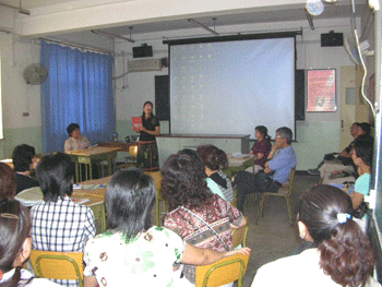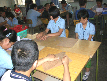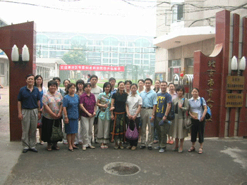 老师们参观了计算机教室、语音教室、各类实验室、文体馆、阶梯教室、琴房、图书馆、现代化的塑胶运动场、面向社会服务的按摩实习基地等,浏览了部分盲人学生创作的艺术作品,还认真观摩了一节盲校初三年级的英语课。在这里大家充分感受到了国家对残疾人教育事业给予的大力支持和投入。盲校教师敬业投入的治学精神,启发鼓励学生时亲切真诚的音容笑貌都令大家深深的感动和由衷的敬佩。而盲人学生们认真积极地求学意志,乐观活泼的人生态度也给予大家莫大的触动和感慨。由于缺乏专用的英文教材,盲校的英语教师要利用休息日和寒暑假期,自己为学生用盲文打字板打出盲文版的英文教材。盲校教师的工作量如此巨大,面临的种种困难更是常人无法想象的,但他们的脸上都洋溢着幸福的笑容,在他们的身上可以深切地感受到他们作为一名盲校教师由衷的自豪和欣慰。这种爱的力量令人动容,这种无私的奉献更使得这次盲校之行成为了一次令人震撼的精神之旅。