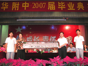 王殿军校长致辞 学生代表向学校赠送全年级合影