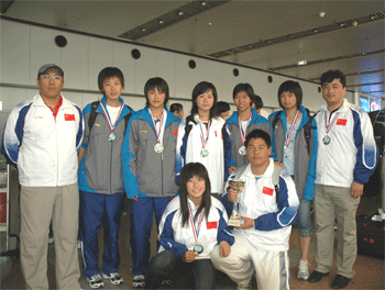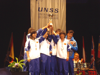 6月27日,由世界中学生体育协会主办的2007年世界中学生田径锦标赛在法国梅里涅克市落下帷幕。代表中国中学生女子田径队参赛的bg真人试玩基层学校女队由教练罗健、吴小五老师,队员孙妍、何嘉、姚佳、谢婷婷、胡婷、秦媛同学组成。队员们经过几天的团结拼搏,最终以623分的总成绩获得团体第三名,其中,高一(9)班孙妍同学以13.08米的成绩获得女子三级跳第一名;初二(6)班姚佳同学以1.66米的成绩获得女子跳高第一名;高二(9)班谢婷婷同学以5.72米和12.79秒的成绩分别获得女子跳远和女子100米的第二名;另外,高二(9)班曹全超同学以19.59米的优异成绩获得此次锦标赛男子选拔队铅球冠军。bg真人试玩代表队的师生们于6月29日凯旋归来。
