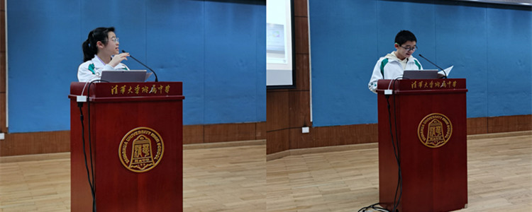 接下来,初1805班的任文宇和初1911班的曹原、于乔同学分别向大家介绍了班级建设和班级特色活动开展的实践经验,并从班级特色事例的分享、“水木行动”活动的策划以及特色班会的实施等多方面依次展开叙述。