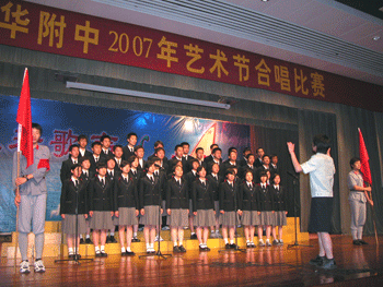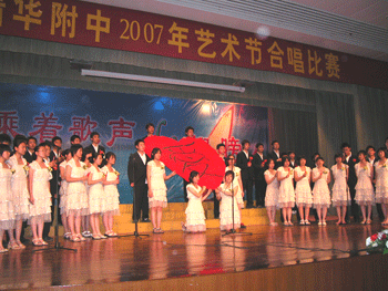 5月29日至6月1日,bg真人娱乐举办了2007年艺术节合唱比赛,初一、初二、高一、高二四个年级分别举办了四场合唱比赛。附中党委书记方妍、副校长刘俊等校领导到场并观看了部分场次的比赛。