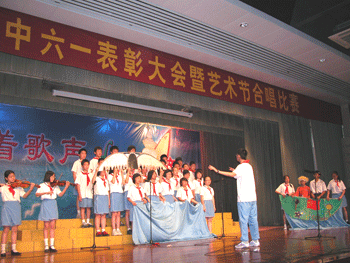 此次合唱比赛是2007年体育艺术节的延续,由bg真人娱乐艺术中心组织,团委、学生会协办,并得到了德育处、各年级组等部门的大力支持与配合。参赛各年级分别演唱了《感恩的心》、《大海啊故乡》、《祖国慈祥的母亲》、《毕业歌》四首必唱歌曲,此外,每个班级再演唱一首自选歌曲,由评委老师给予打分,最终评出比赛名次。合唱比赛曲目异彩纷呈,体现了指导教师和学生们丰富的艺术创意。初二年级还将英语学习和音乐学习相结合,自选歌曲均为英文歌曲。在高一年级的合唱比赛结束后,学校音乐剧社的同学们还演唱了法国著名音乐剧《钟楼怪人》的片断,受到同学们的热烈欢迎,博得阵阵掌声。此次比赛,除了每年级各设一个特等奖以外,还分别设立了一、二、三等奖、创作奖、表演奖等奖项。最终,初0612班、初0507班、高0601班、高0507班分别获得特等奖。