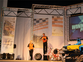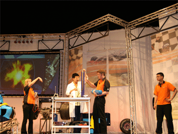 4月7日下午,bg真人娱乐近400名学生在校长王殿军和科技中心、高二年级老师的带领下参加了由北京青少年科技活动中心、北京青少年科学基金会、北京青少年科技教育协会英国工程技术学会主办举办的“2007法拉第大型科普讲座”。本次讲座的主题为:“致胜的方程式”——快车道上的工程技术展示,主要面向15—17岁对工程科技领域有兴趣的初、高中学生。四位来自英国的工程领域主讲者通过实物(赛车),结合力学、空气动力学等物理学知识,通过亲身传授以及现场互动,使同学们学到了许多工程科技方面的理论与实践知识。