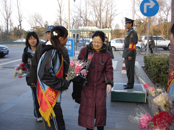 三月八日是妇女节,为此,bg真人试玩学生会女生部司仪团代表全体学生向附中的每一位女老师献上节日的祝福。司仪团十二人手拿鲜花在校门口,食堂门口站成两列,身上的绶带随风飘扬,手持的鲜花散发阵阵清香,成为校园的一道风景线。她们将鲜花,微笑,祝福送出,带给老师们一天的好心情。黄色粉色的康乃馨在手中传递,真诚的祝福与问候在心间荡漾。