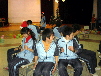 游戏活动之间还穿插有同学们的热情表演。高一电声乐队精彩的开场使现场从一开始便达到高潮,之后高二11班王辰悦同学与高一同学的激情献唱《千里之外》同样引起现场的观众阵阵喝彩。高一8班梅月霞与高一1班张蒲同学也相继带来精彩的歌曲演唱。当Party接近尾声之时,圣诞老人(由高二1班劳益超同学友情出演)在黑暗之中惊喜登场,带来异域风情与现代流行完美结合的舞蹈《波斯猫》,现场气氛再次被点燃。