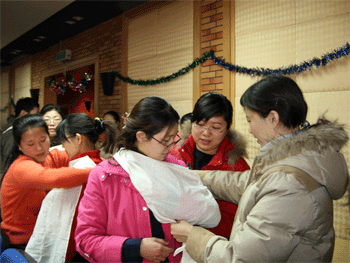 培训活动分理论学习和模拟操作训练,通过专家的讲解和示范,老师们基本掌握了紧急救护方面的知识;练习了各种伤势情况下绷带和三角巾的包扎方法,在假模拟人身上练习了徒手心肺按压等紧急救护措施。最后全体老师通过了理论和实践两方面的测试并取得红十字初级急救员的资格证书,可以参加今后的紧急救护工作,为挽救生命赢得宝贵时间。教师们都感觉参加这样的培训很有意义,虽然牺牲了周末的休息时间,但确实收获很大。