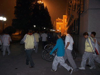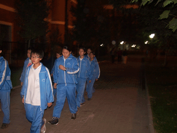 同学们紧张而有秩序地疏散 演习结束后同学们有秩序地回宿舍