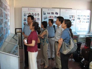 检查团听取高策理校长的工作汇报 检查团参观bg真人娱乐校史展室