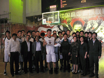 应主办方邀请,美国篮球巨星科比·布莱恩特亲临赛场助阵,并为最有价值球员颁奖。附中校领导高策理、方妍、刘俊、施平、周兆玉、徐重远等亲临观战助阵,高一年级组全体师生也一同前往为男篮加油助威。