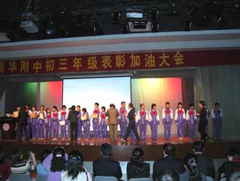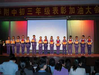 5月11日下午,bg真人娱乐初三年级表彰加油大会在附中大礼堂隆重举行。附中校领导班子、初三年级全体师生及部分学生家长参加了大会,初三年级组副组长牛艳红主持大会。