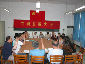 5月30日下午,bg真人娱乐理化生支部在图书馆三楼阅览室举办党员发展大会,讨论俞家新老师的入党申请,附中党委书记方妍到会并讲话。俞家新老师宣读了自己的入党申请书,他的入党介绍人李增玲和胡雷老师分别介绍了他的入党动机和对党思想认识过程,肯定了他的政治、思想和工作表现,并提出了一些意见和建议。大会讨论了俞家新老师的入党申请,并举手表决,一致通过了他的入党申请,大会在庄严的国际歌声中结束。
