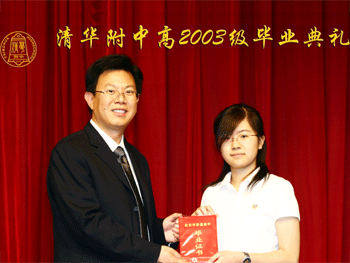 会上还表彰了“万邦儒奖学金”、“希望之星” 获得者,市、区、校级优秀班集体、优秀学生干部、三好学生等,清华大学副教务长陈刚及附中校领导等为获奖者颁发了证书。最后,高策理校长为每位高三毕业生颁发了北京市高中毕业证书,并和他们一一合影留念。