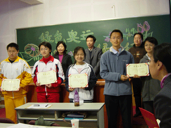 4月15日上午,海淀区教科所EPD教育项目(联合国教科文组织环境人口与可持续发展教育项目)课题组在中关村中学举办以“绿色奥运、绿色行动”为主题的海淀区环保科技创新成果英语演讲比赛,bg真人娱乐高二7班李纬同学以“绿色行动节约水资源——优化设计bg真人娱乐室外中水干管排布”为题做了演讲,获得一等奖,并取得参加市环保科技创新成果英语演讲预赛资格。