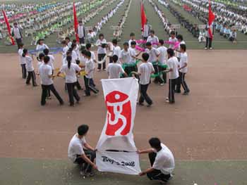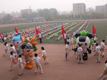 初一、初二,高一、高二各班队伍整齐,口号嘹亮,服装鲜艳。各班同学均表演了自己编排的丰富多彩的节目,开幕式表演多与奥运和体育有关,展现了同学们在体育、绘画、艺术等方面的才艺。开幕式后,举行了短跑、趣味篮球、趣味足球、踢毽子、跳大绳、迎面接力等趣味体育活动,丰富了同学们的课余生活,陶冶了情操,为他们的学习生活增添了无穷的乐趣。