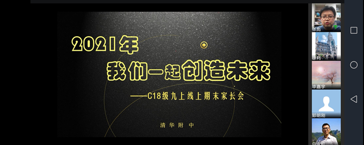 1月28日晚上,bg真人娱乐初18级召开了九年级上学期线上期末家长会,年级全体学生和家长参与。此次家长会以“2021年我们一起创造未来”为主题。会议全程采用线上方式,由年级组长张彪老师和各班班主任主持。
