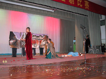 通过专家组的打分和评议,比赛结果于近日揭晓,高0406班的《The Moleday of Love》和高0407班的《The Setting Sun of Afganistan》获得特等奖;高0403班的《Ares》和高0408班的《Myth of Golden Apple》获得一等奖;高0401、高0414、高0405和高0402、高0411、高0404班的节目分获二、三等奖。