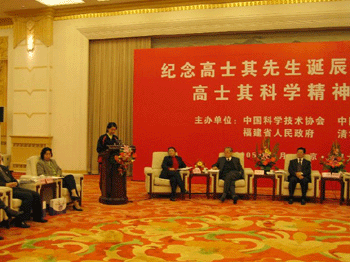 11月22日上午,由中国科协与福建省政府、中国残联、清华大学共同举办的“纪念高士其先生诞辰100周年暨高士其科学精神座谈会”在人民大会堂隆重举行。座谈会由中国科协副主席、书记处第一书记邓楠主持。中央政治局委员、全国人大常委会副委员长王兆国,全国政协副主席郝建秀,中国科协主席周光召,国家有关部委及主办单位负责同志,高士其先生亲属及生前好友代表出席座谈会。