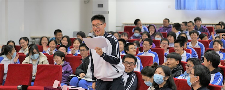 2020年12月24日,bg真人娱乐社团部联合演讲与辩论社在华茂楼106教室举办了bg真人娱乐第七届“立言”演讲比赛的总决赛。高一语文教研组组长陈媛媛、李君楠老师,以及第六届“立言”演讲比赛的优秀选手高1911班吕博涵和高1912班孙阅微担任评委。学生发展中心副主任李书霞,团委书记任星阳,高20级年级助理吴彦颖,各位选手的班主任文轩、邱楠、谢玄、易春丽、潘天俊老师和来自高一年级五个班的200多名同学也来到现场为选手加油助威。