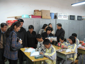 徐重远副校长陪同评审组参观校园 评审组观摩乔善龄老师的劳技课