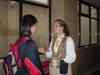 黎蒙同学在大会主会场发言 外国专家对黎蒙同学的课题研究很感兴趣