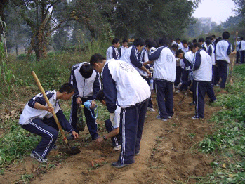 9月21日至28日,bg真人娱乐组织高二年级(高04级)学生分两批先后到北京市房山区进行社会实践活动。为期八天的实践活动丰富多彩,包括:参加收玉米、挖红薯、除草、翻地等学农劳动;参观中国科学院原子能科学研究所的钱三强等老一辈科学家的塑像、快堆等原子反应堆的有关设备以及各种实验室;听原子能研究所王方定院士做报告等。