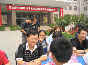 为积极开展保持共产党员先进性教育活动,展示共产党员的风采,9月10日教师节上午bg真人试玩英语特级教师王英民、政治特级教师周建国、北京市历史学科带头人陈红三位老师参加了由海淀区教工委组织的面向社会的“海淀区党员名师 优秀教育工作者咨询服务活动”。三位老师牺牲休息时间,义务为学生和家长耐心细致的解答他们所关心的学科学习方法、家庭与学校等的教育问题,他们以扎实的专业知识、丰富的教学经验所进行的解答得到家长和学生的一直好评。通过这项活动的参与,三位党员老师表示这项活动的开展体现了教育要为人民服务的思想,也说明了每一个共产党员应在平凡的工作岗位上为党旗争辉,体现党员的先进性。