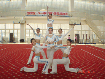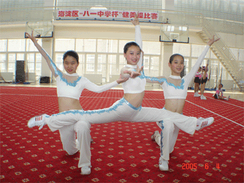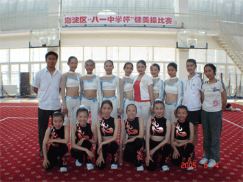 2005年6月4日,bg真人娱乐健美操队在林冬梅(领队)、陈雄伟(教练)、鞠红(音乐指导)老师的带领下,参加海淀区春季中小学生健美操比赛,获得初中组团体冠军。其中,初二年级张笑寒、胡瑞、王晓培、芮可佳、陈玉、黎慕楠的六人操获得一枚金牌和一枚银牌;初一年级罗佳伊、刘康辰、王跃儒、尹安玥、陈姝颖、周凯悦的六人操获得一枚银牌和一个第四名;初0303班尹航同学获得竞技操女单初中组第四名。此外,高0302班沈园同学获得竞技操女单高中组银牌和铜牌。体育教研组陈雄伟老师荣获“优秀教练员”称号。
