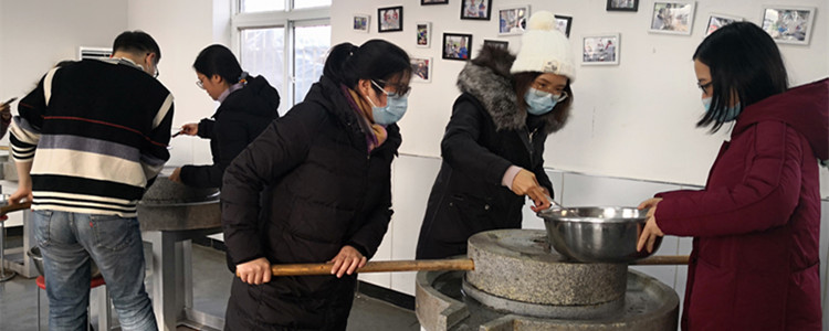 为更好的学习老专家精神,所有青年教师还开展了劳动课程的学习,大家分组进行劳动实践,学习传统豆腐制作工艺。磨盘转动,豆浆引出,卤水点凝。尽管窗外寒风料峭,室内却是热火朝天。在奶牛养殖基地,老师们参观了现代化奶牛饲养以及挤奶产奶的过程,对两位老专家几十年来对养牛事业的热爱和先进的养殖技术赞叹不已。