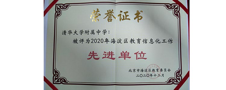bg真人试玩被评为“2020年海淀区教育信息化工作先进单位”,并被选为“教育部基础教育司基于教学改革、融合信息技术的新型教与学模式实验区”海淀区实验学校。