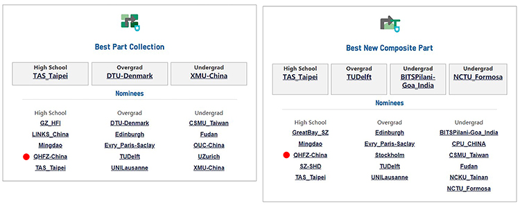 QHFZ-China在2020 iGEM Jamboree中获得最佳组合元件和最佳元件收集双项单项奖提名