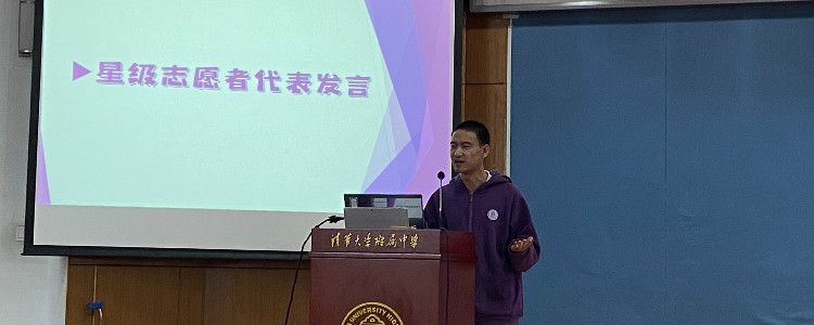 随后,四星志愿者高1904班肖泽宇同学作为学生代表分享志愿服务心得。他认为志愿服务工作要重视活动组织效率,事前做好任务分工、活动中做好统筹和协调,有助于提高活动效率,这样才能保护志愿者的积极性,让更多的同学更有兴趣参与活动;另外,他提到志愿者们在参与活动过程中要主动承担任务,积极思考解决问题的办法,而不应该等着管理者给分配任务或者抱怨活动组织方工作疏忽的地方。